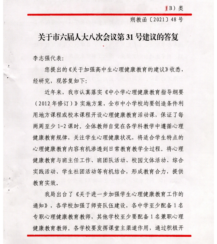 關于市六屆人大八次會議第31號建議的答復
