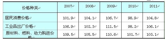 表1 2007-2011年全市主要價格指數