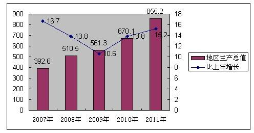 圖1 2007-2011年全市生產總值及其增長速度