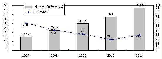 圖3 2007-2011年全市全社會固定資產投資及其增長速度