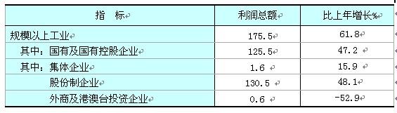 全年規模以上工業實現利稅289.6億元,比上年增長48.9%;實現利潤174.59億元,增長61.8%。