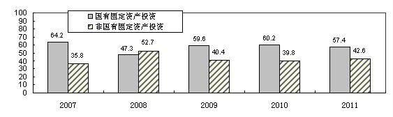 圖4 2007-2011年國有、非國有固定資產投資占全市固定資產投資比重