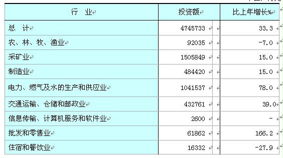 在工業投資中,傳統產業(煤炭、電力)投資合計247.4億元,增長32.3%;非煤、電投資227.2億元,增長34.6%。