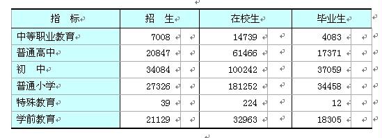 教育:全年全市中等職業教育學校共招生7008人,在校學生達到1.5萬人;普通高中共招生2.1萬人,在校學生達到6.2萬人;初中共招生3.4萬人,在校學生達到10.0萬人。