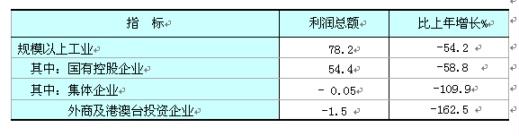 全年規(guī)模以上工業(yè)實現(xiàn)利稅195.1億元,比上年下降33.4%;實現(xiàn)利潤78.2億元,下降54.2%。