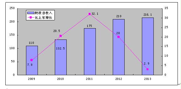 財政:全年全市財政總收入216.1億元,比上年增長2.9%。公共財政收入95.3億元,增長13.1%。其中,稅收收入189.0億元,增長1.4%。