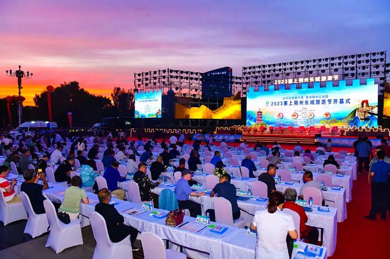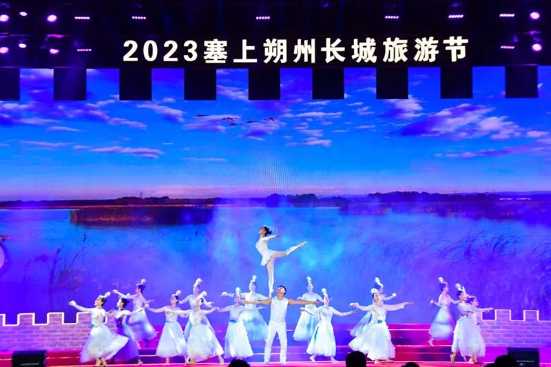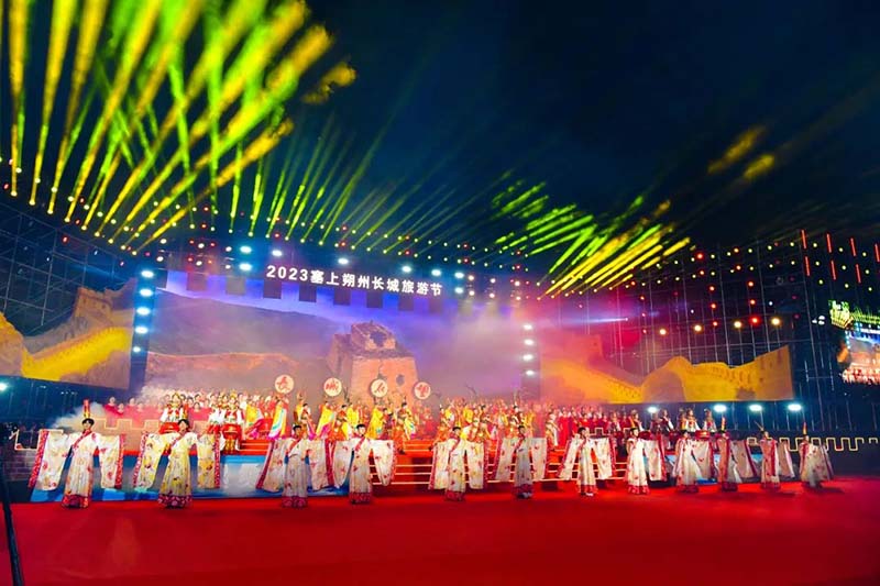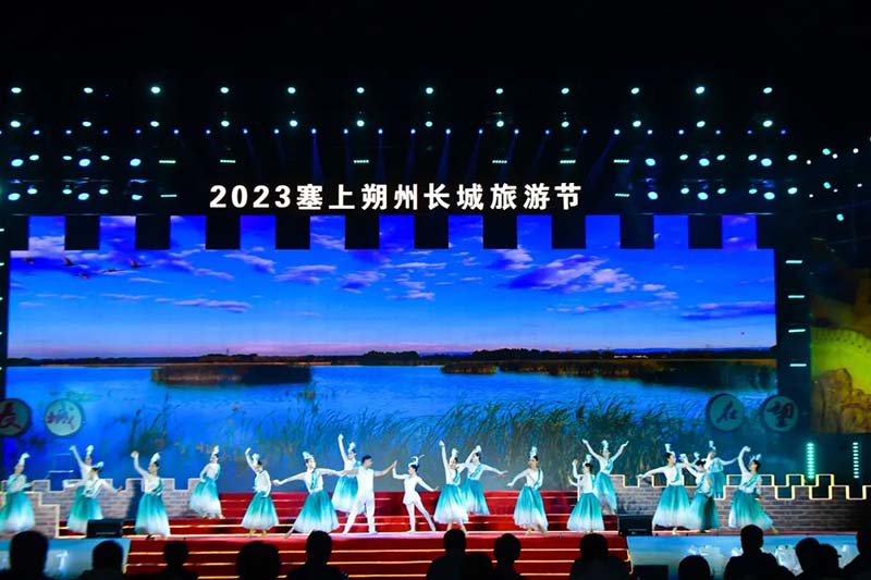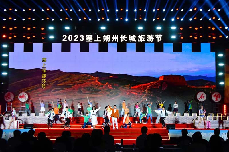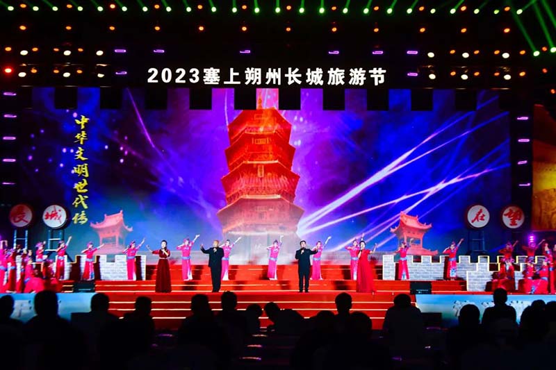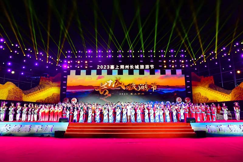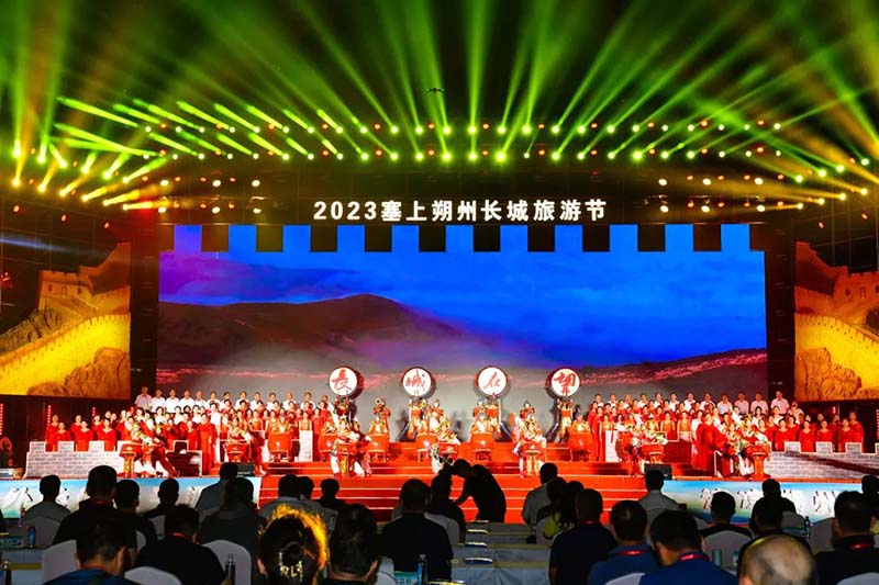 2023塞上朔州長城旅游節以朔州深厚的歷史文化底蘊為支撐,分為長城在望、桑源溢彩、綠都芬芳三個篇章。在開幕式現場,伴隨著激昂的大型鼓樂,合唱《廣武浩歌》正式拉開帷幕,歌舞《歲月長城》《雁魚燈》,女聲獨唱《人說山西好風光》《來跳舞》,舞蹈《昭君出塞》《朔風頌》等文藝節目依次上演,讓觀眾深深沉醉其中。?