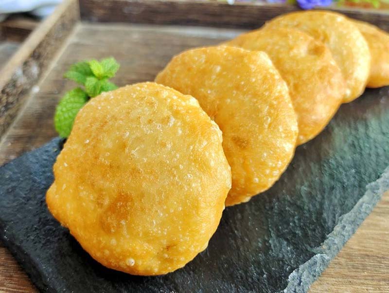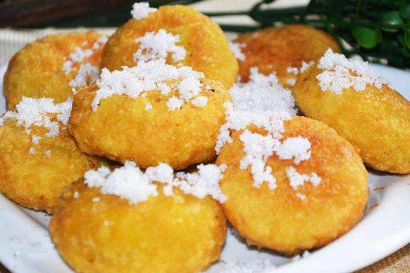 油糕,是以黃米(即軟黍米面)為皮,糖料或棗泥、豆沙等為餡,經(jīng)油炸制而成的食品,特點(diǎn)是柔軟、黏性大、外焦里嫩、黃中發(fā)紅、紅中透亮、美味可口。因“糕”與“高”諧音,為取其步步登高、吉祥富貴之意,人們往往在逢年過(guò)節(jié)或婚喪嫁娶、孩子滿月、日壽誕、起房蓋屋時(shí)食之。多年來(lái),油糕伴隨著人們送舊迎新、慶賀道喜,成為朔州人民喜愛(ài)的傳統(tǒng)食品。