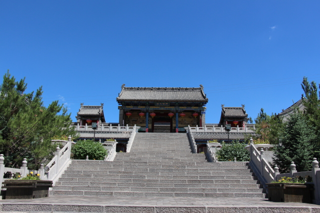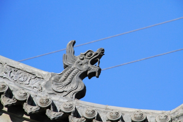 平臺的兩邊設有石桌子和凳子,可供游客休息。此處還有一排磚砌的屋子,古樸而明快的中國紅門窗、廊柱使得整排灰色的房子頓時生輝。手扶雕著龍紋的石欄桿,登上前面的臺階就是文昌塔區的大門了。
