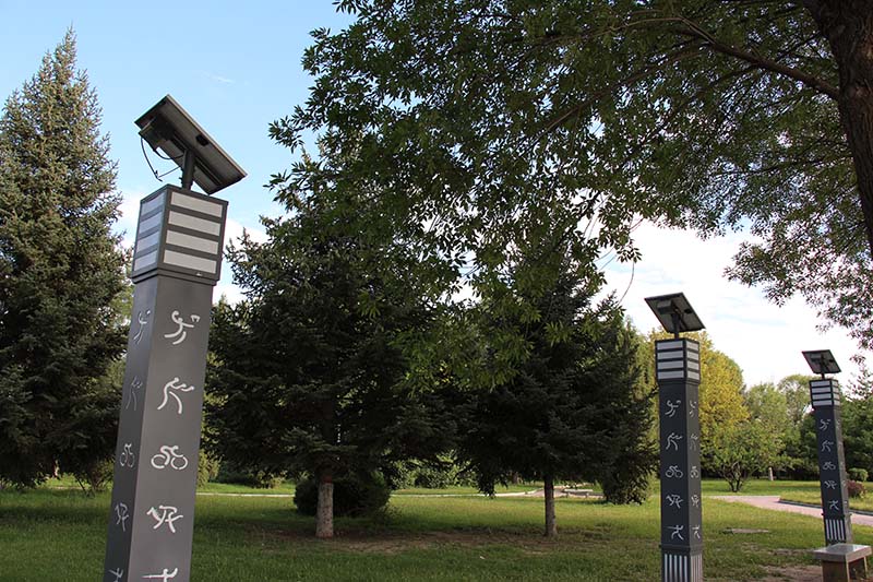 智慧體育公園在民福街與開發(fā)路交叉口西南,是一個既適用于中小學(xué)體育教學(xué),又服務(wù)于市民休閑健身的綜合性廣場。廣場分為體育運(yùn)動區(qū)、休閑活動區(qū),體育運(yùn)動區(qū)面積為60畝,建有標(biāo)準(zhǔn)的田徑場、足球場、籃球場、網(wǎng)球場、看臺及群眾健身路徑;休憩活動區(qū),面積為30畝,布局以園林綠化為主,采用簡潔明快的抽象式園林設(shè)計手法,突出地形造景、植物造景和園林小品造景,形成了獨(dú)特的園林藝術(shù)空間。該工程是我市創(chuàng)建全國文明城市的重點工程之一。