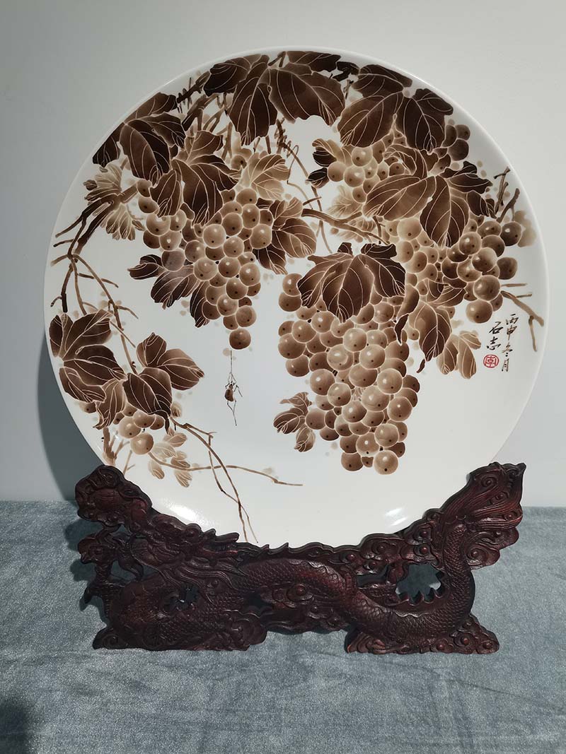釉下彩是瓷器釉彩裝飾的一種,又稱“窯彩”。釉下彩是陶瓷器的一種主要裝飾手段,是用色料在已成型晾干的素坯上繪制各種紋飾,然后罩以白色透明釉或者其他淺色面釉,一次燒成。燒成后的圖案被一層透明的釉膜覆蓋在下邊,表面光亮柔和、平滑不凸出,顯得晶瑩透亮。