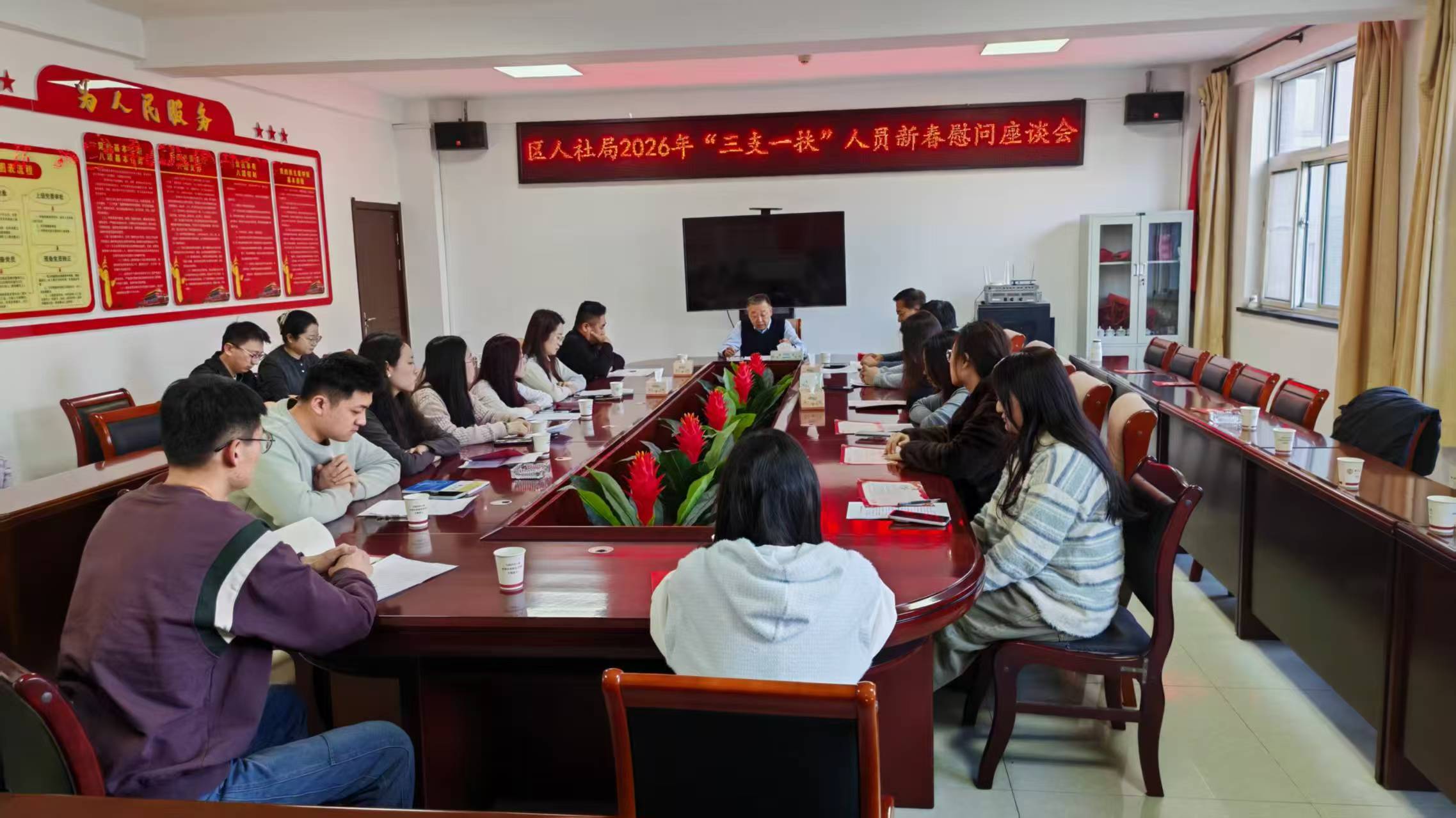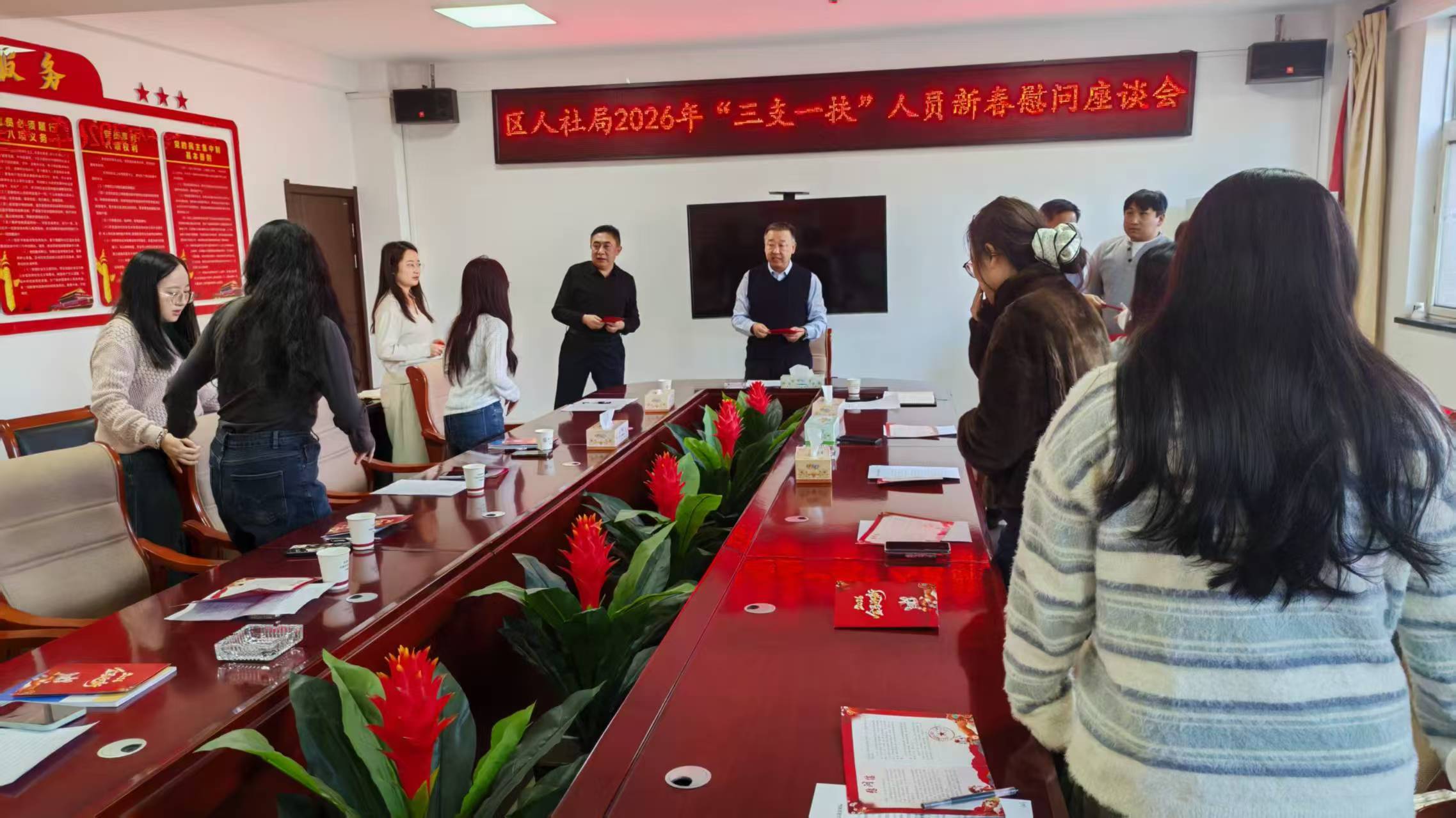 歲末迎新際,關懷暖人心。為深入貫徹落實國家和省市關于“三支一扶”工作的決策部署,切實把黨和政府的溫暖送到基層服務的青年群體中,2026年2月2日朔城區人社局組織召開新春慰問“三支一扶”人員座談會,全區12名“三支一扶”代表齊聚一堂參加座談。