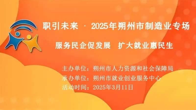 ????為深入貫徹落實我市兩會精神,促進高校畢業生等青年高質量充分就業,扎實做好穩就業、保民生工作,朔州市人社局于3月11日上午9點在朔州市人才大樓舉辦“職引未來? 2025年朔州市制造業專場”招聘活動,誠邀廣大企業參會。
